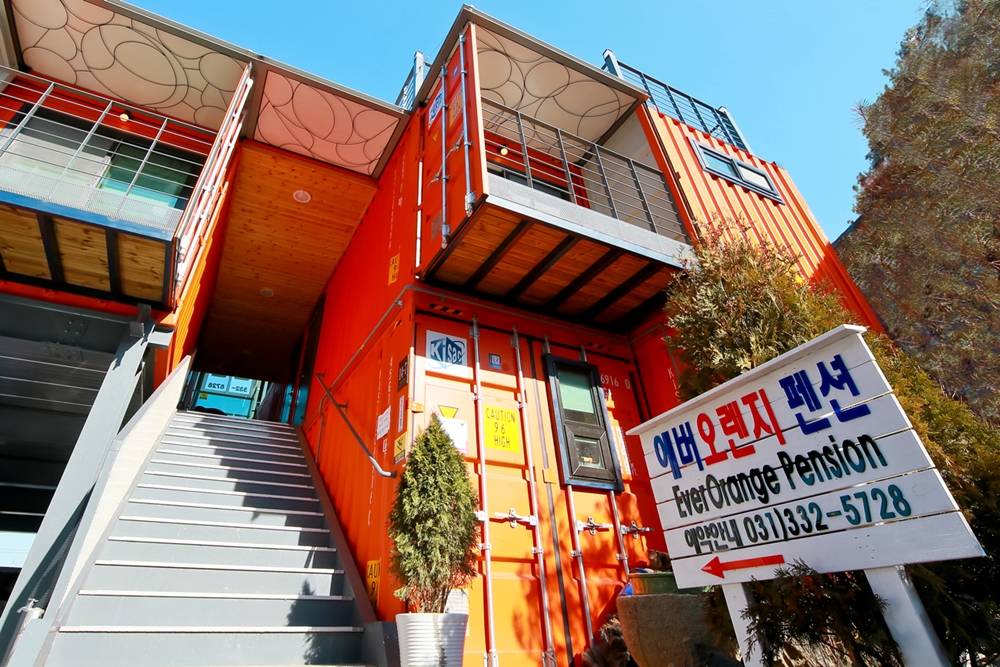에버 오렌지 펜션은 해상용 컨테이너로 건축되어 톡톡 튀는 외관과는 달리 내부는 차분한 인테리어로 편안한 휴식 공간이 될 수 있도록 설계하였다. 국내 최대 규모의 에버랜드와 캐리비안베이와 3분 거리에 위치하고 있을 뿐만 아니라 다양한 관광명소가 근교에 위치하고 있어 가족, 친구, 연인과 즐거운 여행을 즐기며 좋은 추억을 쌓을 수 있다.