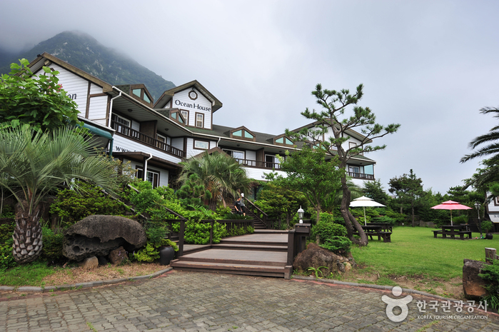 오션하우스는(oceanhouse)는 제주도 서남쪽에 위치한 세련된 네델란드풍의 전원형 펜션이다. 아름드리 나무와 넓은 잔디밭 정원은 주위의 경관과 어울리며 또한 부지를 계단식으로 정리하고 데크를 넓고 길게 만들어 이국적인 정취가 물씬 풍기도록 하였다.