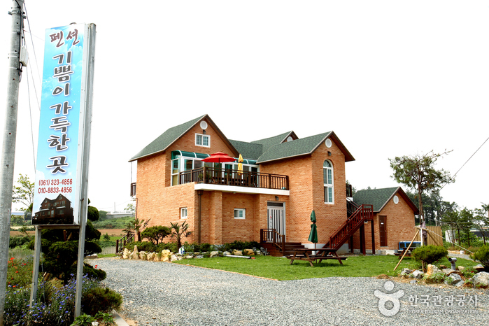 기쁨이 가득한 곳은 침대 룸과 온돌 룸으로 운영되며 넓은 잔디정원과 2층의 테라스는 아늑하고 편안한 분위기를 연출한다. 주변에 함평해수찜, 자연생태공원, 함평나비엑스포 등 다양한 문화체험도 경험할 수 있다.