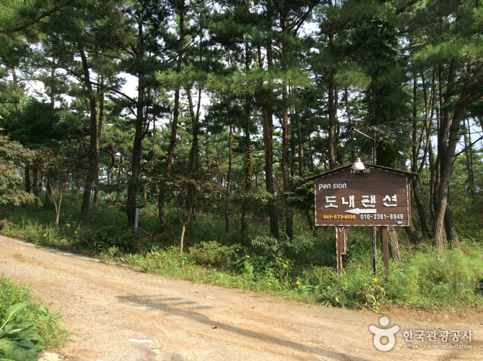 도내솔향기펜션은 9,900㎡의 넓은 소나무 숲길을 소유하여 외부인의 방해 없이 산림욕을 즐길 수 있으며 인근에 해수욕장과 팔봉산이 있어 놀거리와 볼거리가 풍부하다. 갯벌 바다 바로 앞이라 갯벌체험이 가능하며 호수 앞이라 민물낚시도 가능하다.