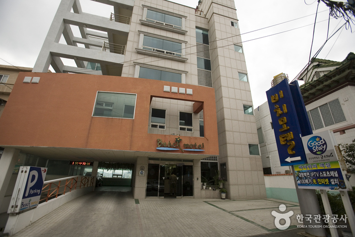 부산에 있는 국립한국해양대학교에서 태종대 공원쪽으로 200m쯤 가다가 바닷가로 50m가량 들어간 곳에 위치한 비치모텔은 바다 위의 객실이라 할 정도로 뛰어난 해안가 전망을 제공한다. 온돌형, 더블형, 침대형 객실이 총 29개가 있으며 모텔 앞 바로 앞에 포구와 등대가 있어 객실에서 전망되는 야경 또한 매우 아름답다. 도보로 10분 거리에 태종대가 있는 것이 큰 장점이다.