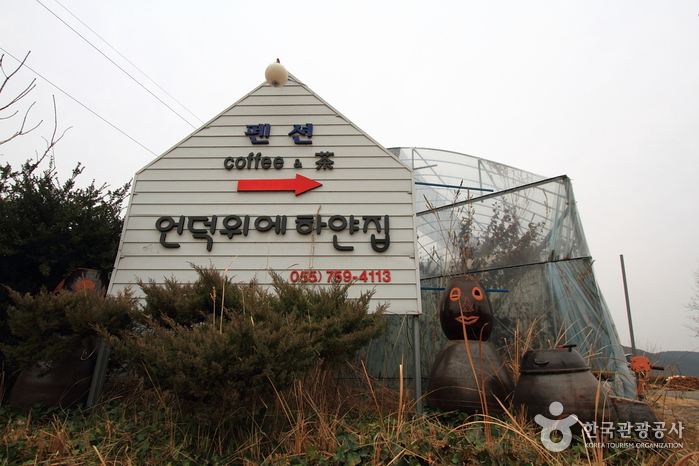 산으로 둘러싸인 잔잔한 풍광의 진양호는 명성이 높아 일찍이 진주 8경으로도 손꼽혀 왔다. 그런 그림 같은 풍광을 품 안에 두르고 있는 ‘언덕위에 하얀집’. 이름 그대로 호수를 전망하는 언덕에 하얀색의 목조 펜션이 동화처럼 서 있다. 2007년부터 영업을 시작한 이곳은 객실에서 바라보는 호수의 조망이 가장 큰 매력이다. 창이 동향으로 나 있어서 방 안에서 일출 감상이 가능하다는 점도 자랑거리다. 원래 건설업에 몸담았던 사장님은 4년 전 주 5일제의 전면 시행에 발맞추어 펜션 운영을 결심하였단다. 사장님의 꿈은 이곳을 찾는 모든 이들에게 내 집 같은 휴식을 제공하는 것. 객실은 5개로 아담한 규모지만 족구장과 텃밭, 야외 식탁, 아기자기한 정원 등이 조화롭다. 꽃과 나무에 관심이 많은 사장님 덕분에 정원이 풍성하고, 펜션 내부에 차를 마실 수 있는 공간이 마련되어 있는 것도 반갑다. 호숫가에서는 바비큐 파티가 가능하다. 펜션 사무실에서 여러 가지 폭죽을 구입할 수도 있으니 모처럼의 여행을 위한 추억 만들기에 부족함이 없을 듯하다. 예약 손님은 진주 시내에서 픽업 서비스도 제공한다. 한편 인근의 온실에서는 수천 개의 모종을 관리 중이며 판매도 한다고 하니 관심이 있으면 문의해보길 바란다.